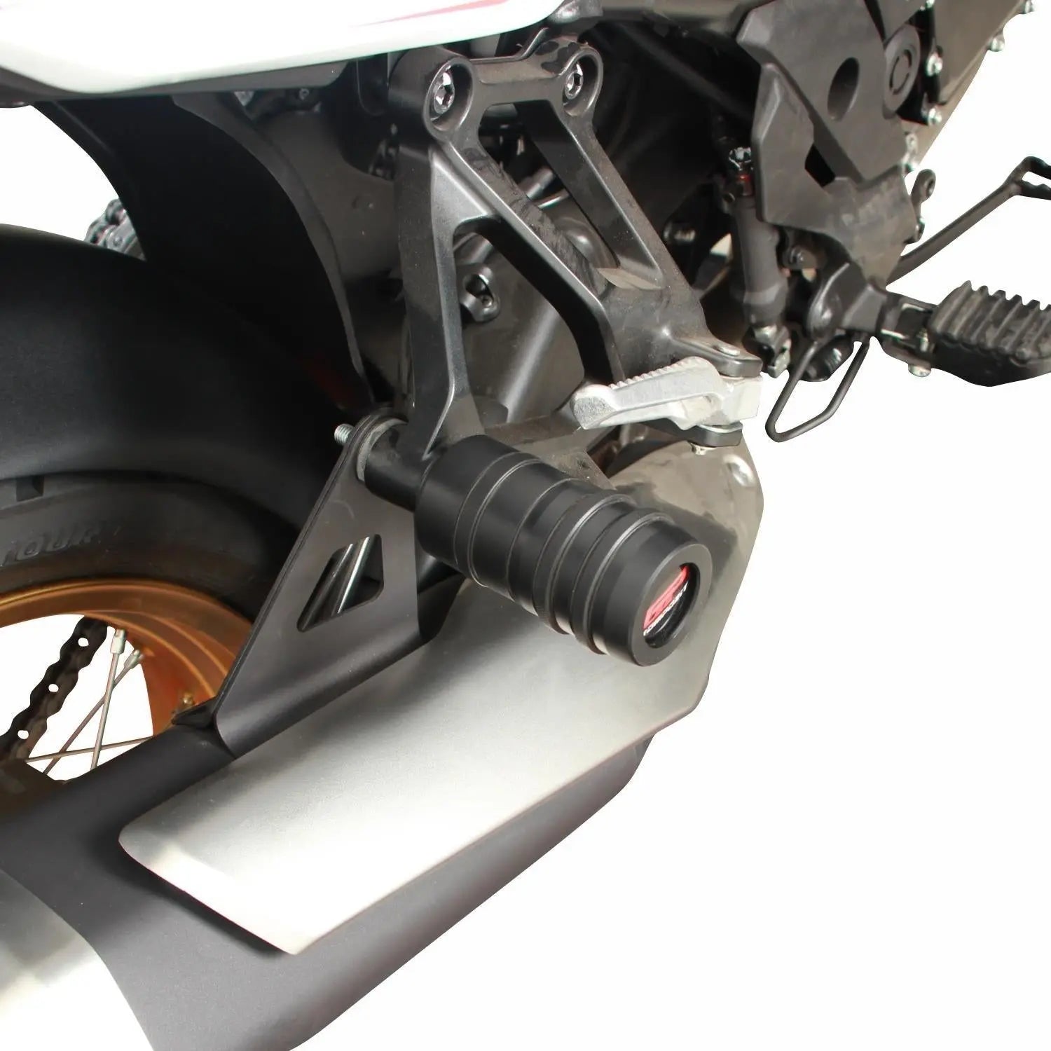 A slider to protect the exhaust and the rear part of the motorcycle